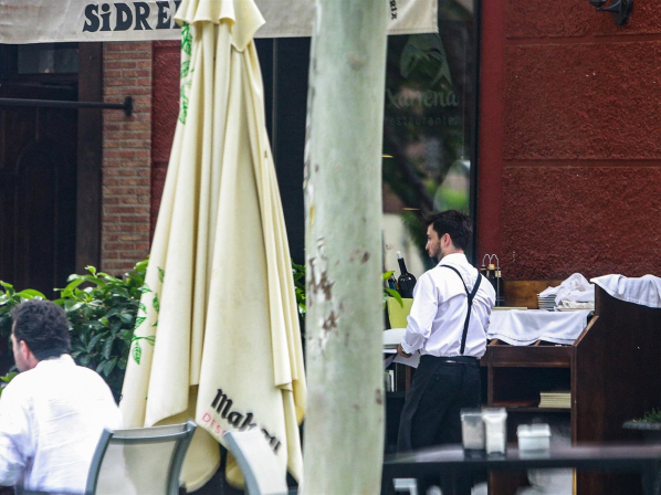 Un camarero atiende a las mesas de en una terraza de una sidrería de Madrid. Ricardo Rubio - Europa Press