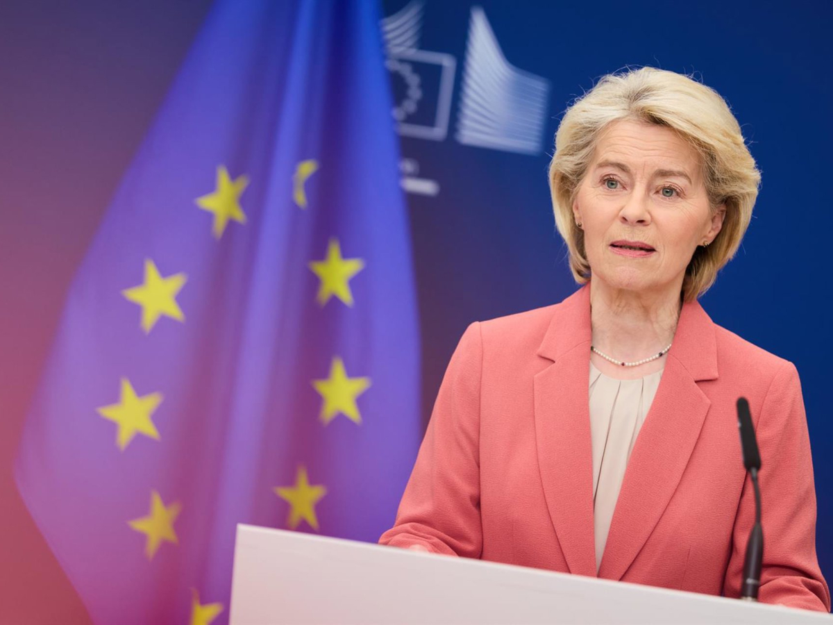 La presidenta de la Comisión Europa, Ursula von der Leyen, durante una rueda de prensa en Bruselas DATI BENDO