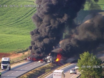 According to sources from the 112 Emergency Service informed to Europa Press, the accident occurred at 6:48 AM at kilometer 170 of the aforementioned highway, in the direction of Madrid. The collision caused both trucks to catch fire, and firefighters are working on it.