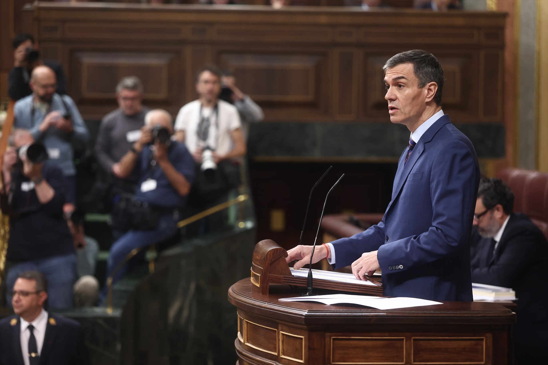 The President of the Government, Pedro Sánchez, has appeared before Congress to explain the Executive's position on the war in Iran; and he has done so brandishing the same concept he has been championing since the US and Israel started the conflict: “No to war”. Sánchez began by recalling José María Aznar's subservience to George Bush in the Iraq war and its disastrous consequences, clarifying that, in this case, “we are not in the same scenario, but in something much worse”. And addressing the benches of the Popular Party and Vox, he reproached them that “this is an absolute disaster and you have contributed with your support and your complicit silence”.