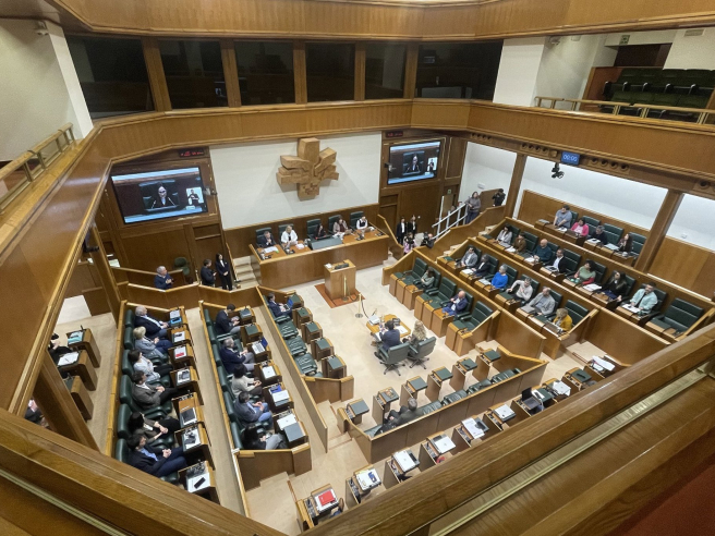 La propuesta de Vox ha sido rechazada por el Pleno tras recabar 65 votos en contra de PNV, EH Bildu, PSE-EE y Sumar, siete abstenciones del PP y únicamente el voto favorable de la parlamentaria de la formación promotora.