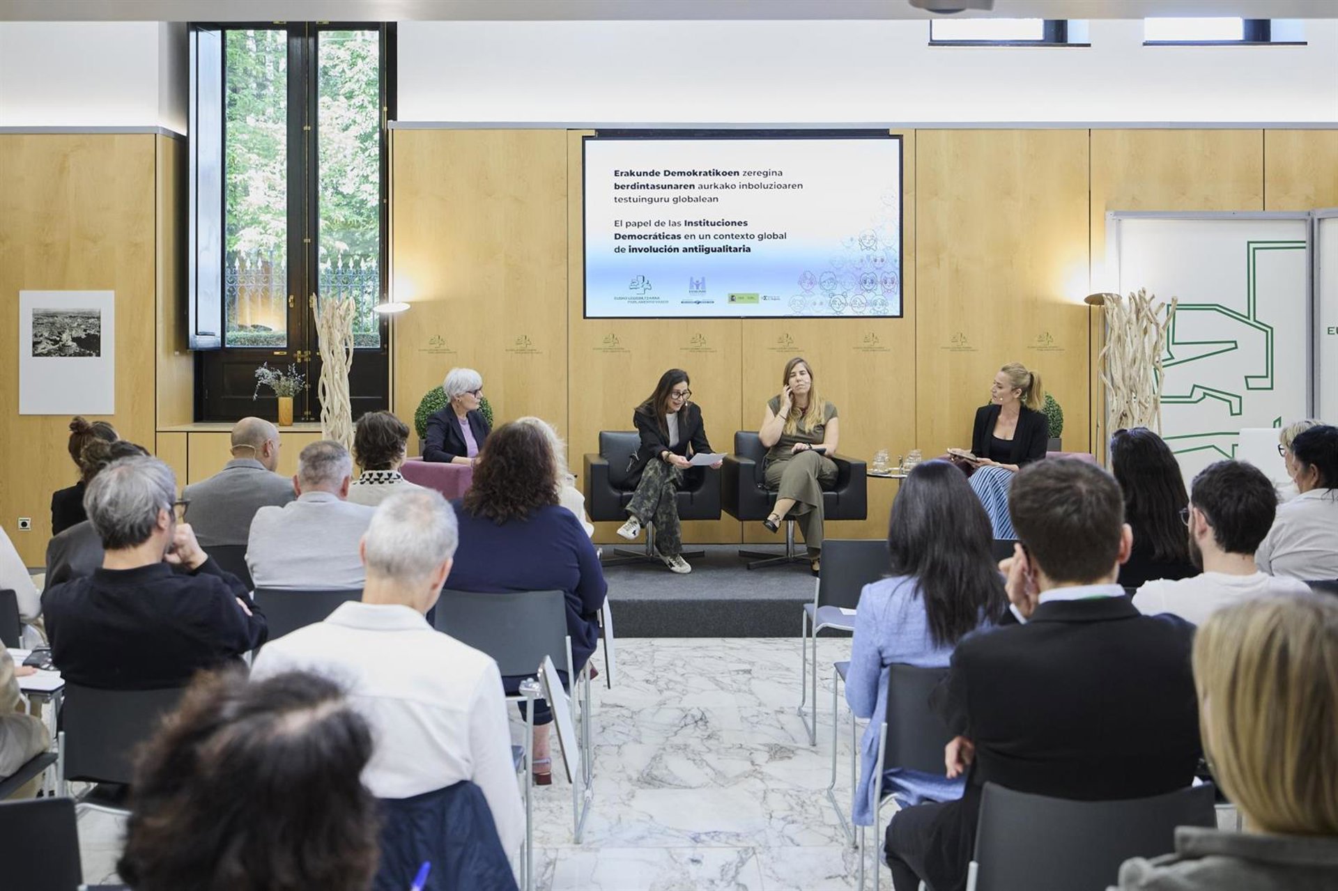 El Parlamento Vasco ha celebrado este martes la jornada “El papel de las instituciones democráticas en un contexto global de involución antiigualitaria”, un encuentro en el que se ha analizado cómo responder de forma más eficaz a los discursos que cuestionan la igualdad, los derechos humanos y el sistema democrático.