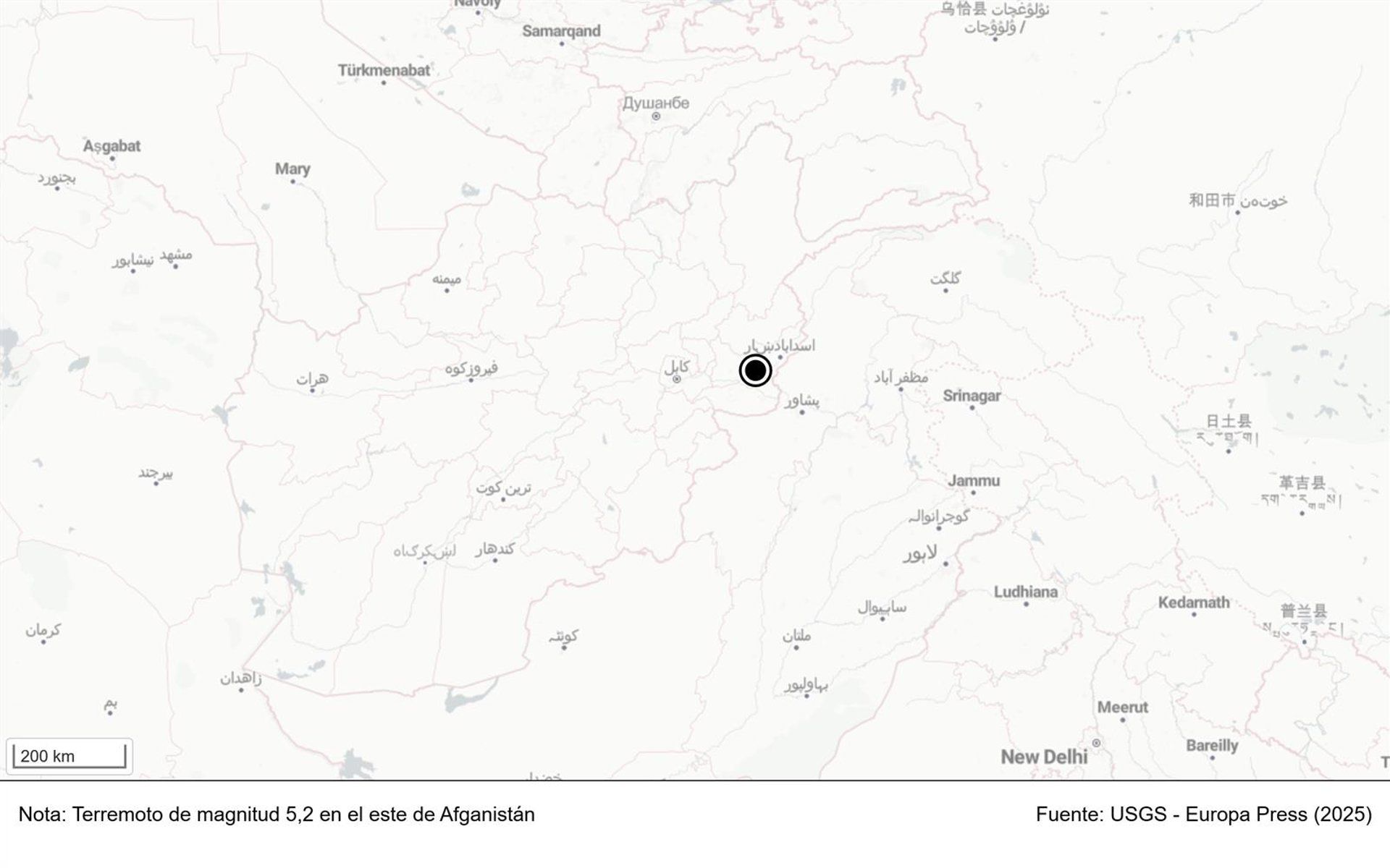 El Servicio Geológico de Estados Unidos (USGS) ha comunicado que el epicentro del terremoto de este martes se localizó a unos 35 kilómetros al este de Jalalabad, la capital de la provincia de Nangarhar, y el hipocentro se encontró a diez kilómetros de profundidad. No se han reportado aún nuevas víctimas ni daños adicionales.