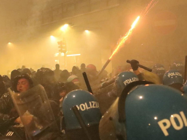 Durante los disturbios, marcados por el lanzamiento de bombas de humo y cócteles molotov contra los agentes, seis personas fueron detenidas, de acuerdo con el balance ofrecido por las autoridades italianas.