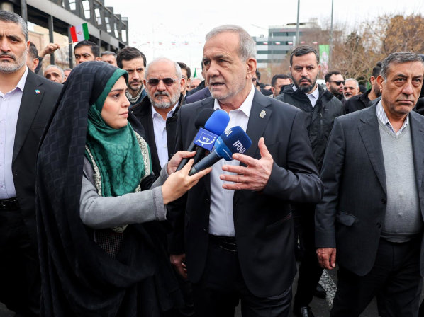 El presidente de Irán, Masud Pezeshkian, habla ante la prensa durante los actos en Teherán en conmemoración del 47º aniversario de la Revolución Islámica de 1979 Europa Press/Contacto/Iranian Presidency