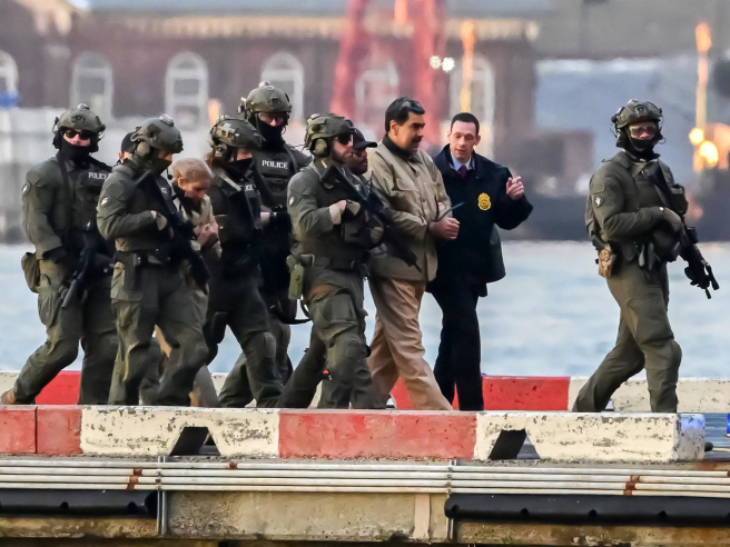 El presidente de Venezuela, Nicolás Maduro, a su llegada esposado a Nueva York junto a agentes estadounidenses Kyle Mazza-CNP / Zuma Press / ContactoPhoto