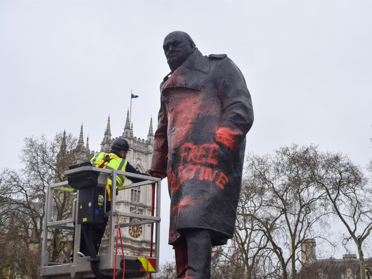 El periódico británico 'Daily Express' ha señalado que la figura de Churchill ha aparecido recubierta con lemas como “criminal de guerra sionista”, “detened el genocidio”, “Palestina libre”, “nunca más” y “globalizad la intifada”, consignas que se vinculan a un colectivo de activistas propalestina, según el citado medio.