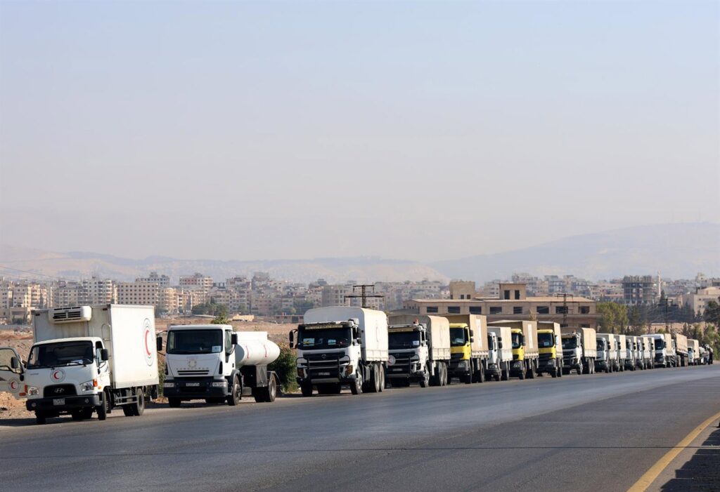 Ataque a convoy de ayuda humanitaria en ruta hacia Sueida, denuncia la Media Luna Roja Siria