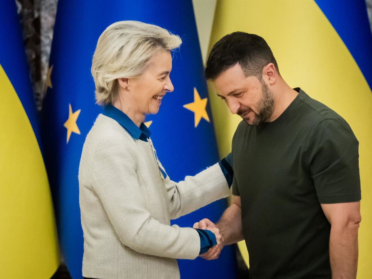 La presidenta de la Comisión Europea, Ursula von der Leyen, y el presidente de Ucrania, Volodímir Zelenski. Christoph Soeder/dpa Pool/dpa