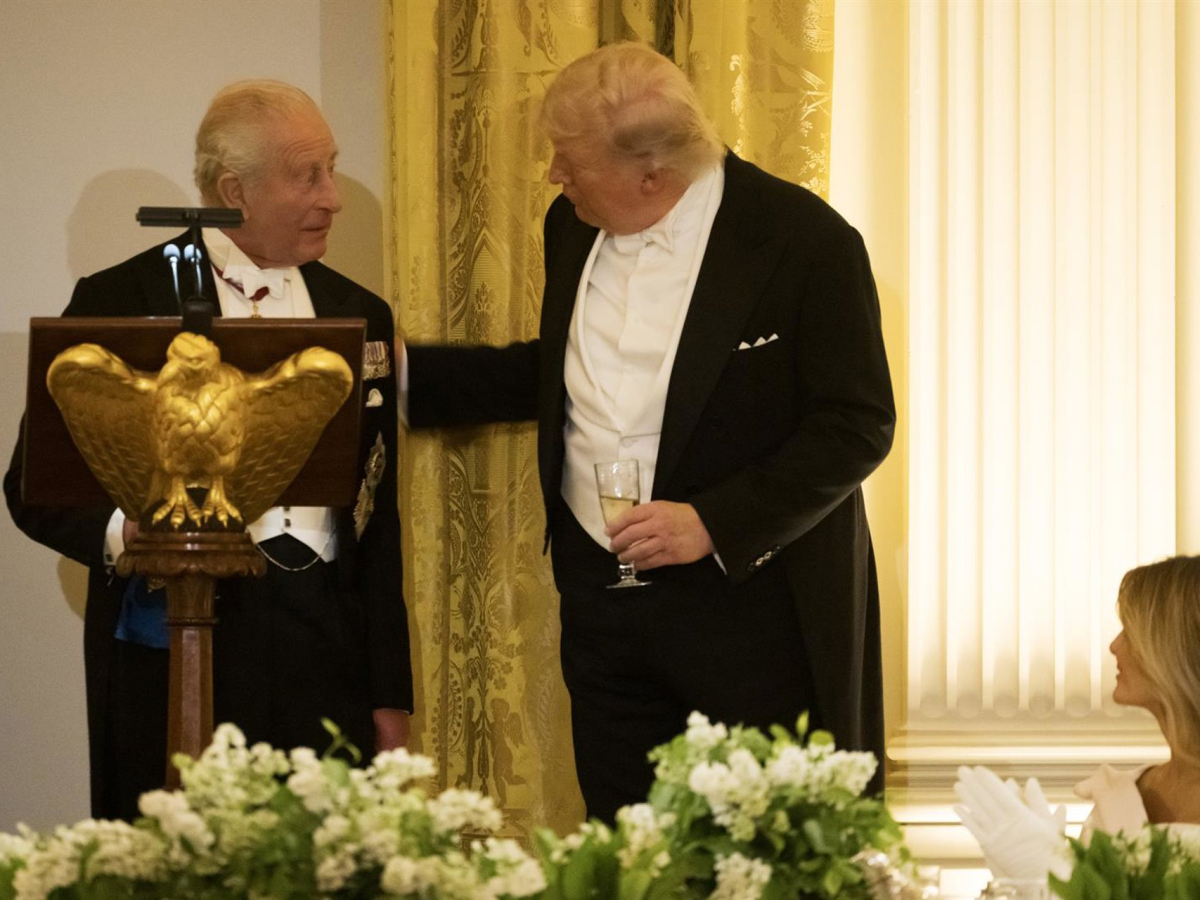 “Recientemente comentó, señor presidente, que si no fuera por Estados Unidos, los países europeos hablarían alemán. Me atrevo a decir que, si no fuera por nosotros, ustedes hablarían francés”, ha bromeado el monarca británico en una cena de Estado en la Casa Blanca, aludiendo a las palabras de Trump en la Cumbre de Davos celebrada en enero.