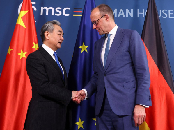 El ministro de Exteriores chino, Wang Yi, con el canciller de Alemania, Friedrich Merz Thilo Schmuelgen/Reuters/Pool/dp / DPA