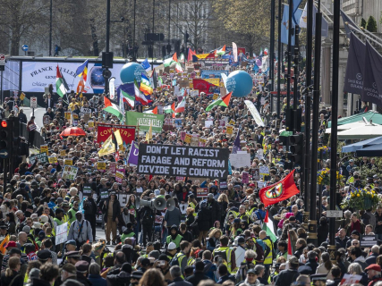 “Estimamos que hay medio millón de personas en la manifestación, la mayor manifestación de la historia contra la extrema derecha. Nos da confianza para seguir. Muchas gracias”, ha proclamado un portavoz de Alianza Juntos, convocante de la protesta, Kevin Courtney, desde Whitehall.