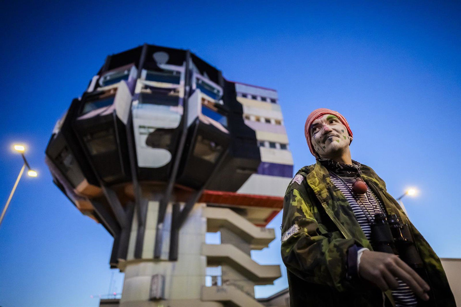 “El Bierpinsel ha sido ocupado para su uso social”, afirmaban los panfletos. Más adelante, se desplegó una pancarta en la fachada que declaraba “Fuego y llamas contra las autoridades represivas”, acompañada de una bandera palestina.