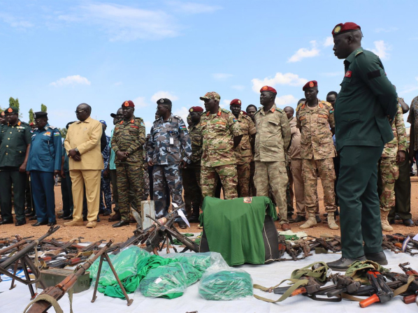 El jefe del Ejército sursudanés, general Paul Nang Majok, inspecciona armas incautadas  Europa Press/Contacto/Samir Bol