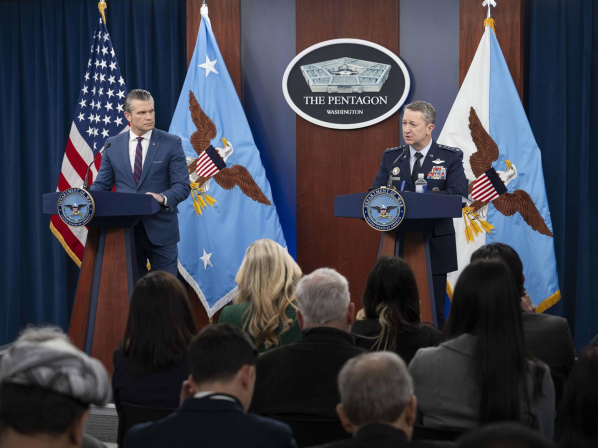 El secretario de Defensa, Pete Hegseth, junto al Jefe del Estado Mayor de EEUU, Dan Caine, en el Pentágono. Europa Press/Contacto/Ssgt. Madelyn Keech/Dod