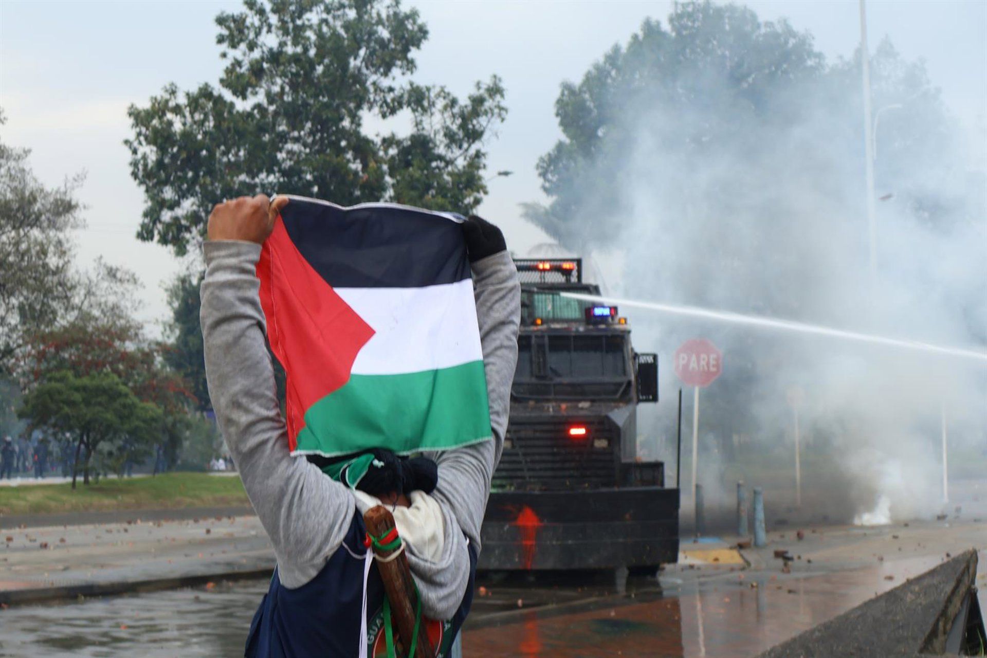 En recientes disturbios ocurridos en Bogotá, capital colombiana, se reportaron al menos cuatro agentes de policía lesionados. Los hechos sucedieron el pasado viernes frente a la Embajada de Estados Unidos, durante una manifestación de comunidades indígenas que también criticaba la cooperación estadounidense en acciones militares en Gaza.