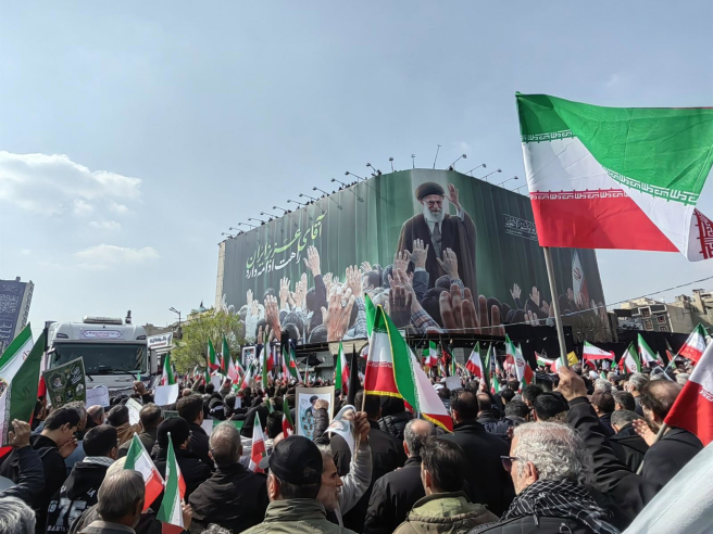 Varios vídeos difundidos por la cadena pública iraní IRIB recogen grandes columnas de humo en las inmediaciones de la calle Enquelab y a manifestantes mirando hacia el punto de la detonación mientras corean eslóganes como “Dios es el más grande”, “Muerte a Israel” y “Muerte a Estados Unidos”.