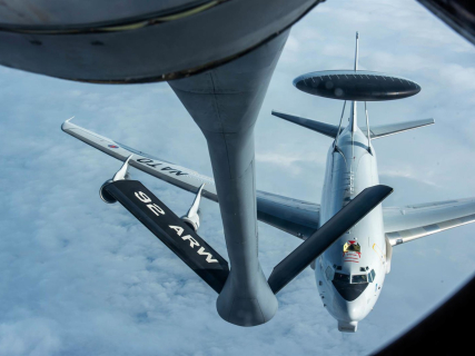 El AWACS, con un coste estimado de unos 250 millones de euros, es uno de los principales aviones de vigilancia de la Fuerza Aérea estadounidense. Se reconoce fácilmente por el gran radar en forma de disco instalado sobre el fuselaje y se emplea para coordinar operaciones de combate aéreo y detectar amenazas a gran distancia.
