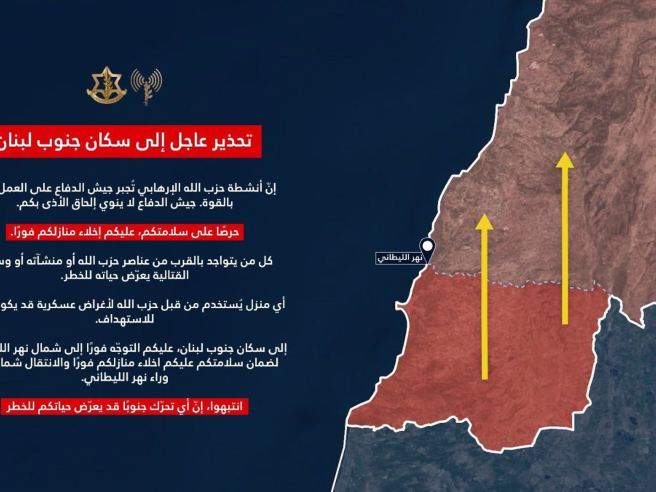 Las Fuerzas Armadas de Israel han vuelto a ordenar este sábado la salida inmediata de toda la población del territorio libanés situado al sur del río Litani, una franja en la que se encuentran ciudades relevantes como Tiro, Sidón, Nabatiye o Yezín.