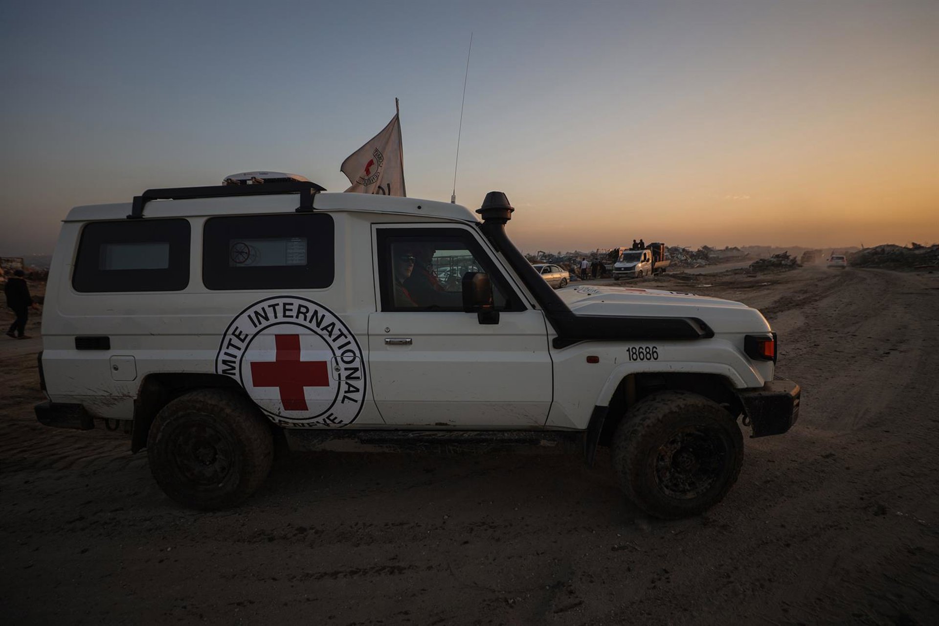 Un vehículo del Comité Internacional de la Cruz Roja (CICR) Omar Ashtawy/APA Images via ZUMA / DPA