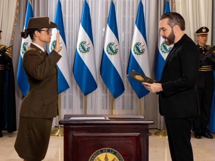 ‘Si queremos construir el país que merecemos, debemos romper paradigmas’, expresó Bukele en su perfil de la plataforma X, donde compartió fotografías del acto de nombramiento de Trigueros, quien también posee formación en medicina.