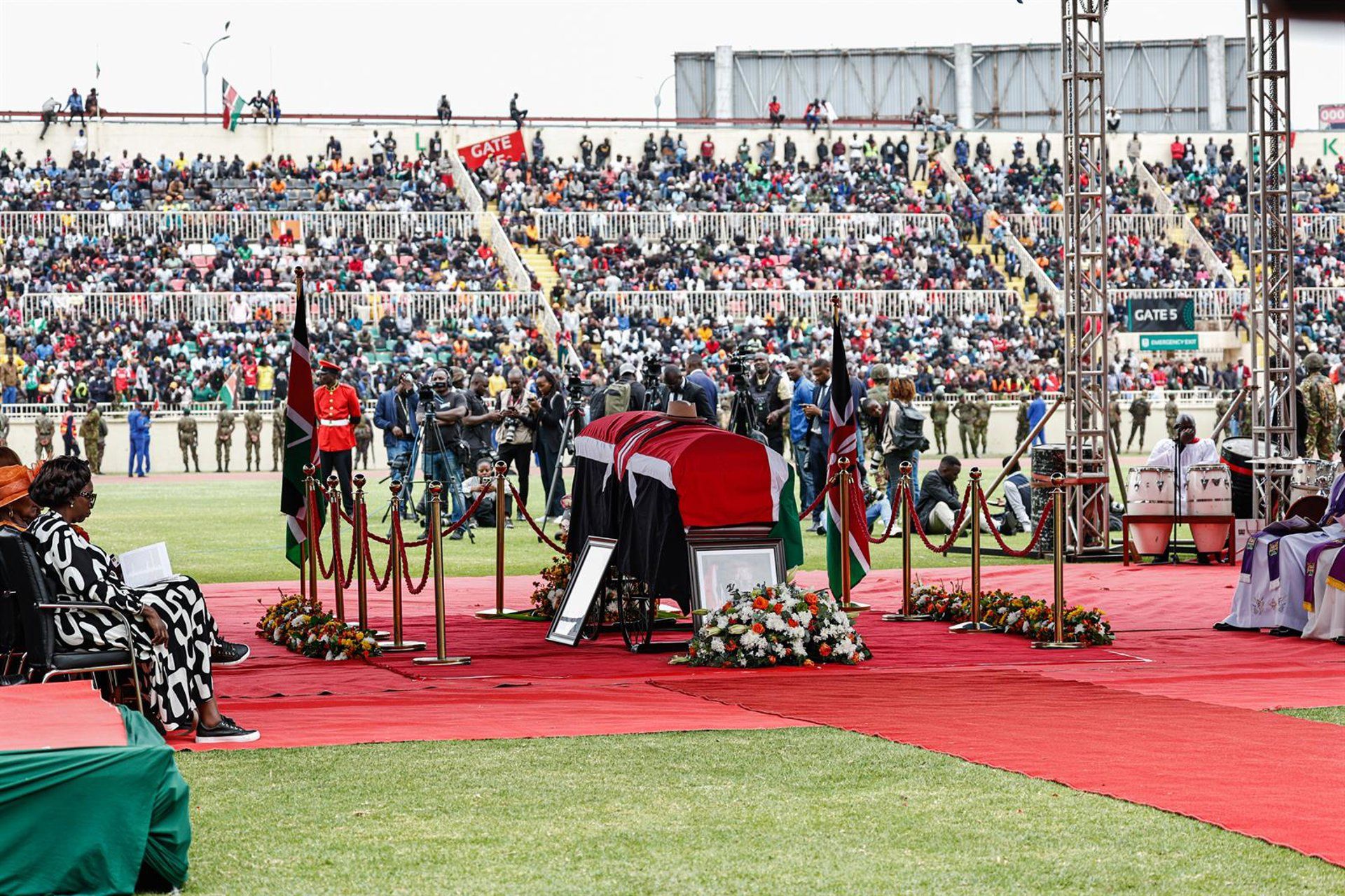 El comienzo del velatorio en Kisumu fue algo agitado, con varios asistentes desvaneciéndose y requiriendo atención médica urgente, aunque sin mayores incidentes. La ceremonia se desarrolló con relativa tranquilidad, en contraste con los violentos sucesos del día anterior en el estadio Nyayo de Nairobi, donde una estampida provocó al menos dos muertes y numerosos heridos.