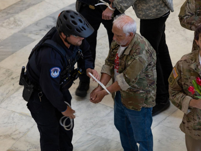 Según ha recogido el portal de noticias estadounidense The Hill, al menos 32 manifestantes fueron arrestados en el marco de esta acción, impulsada por varios colectivos de veteranos, entre ellos About Face, el Centro para la Conciencia y la Guerra (CCW, por sus siglas en inglés), Veteranos por la Paz, Defensa Común, la Coalición de Resistencia de Fayetteville, Familias Militares Hablan y 50501 Veteranos.