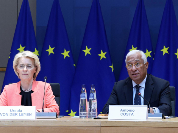 La presidenta de la Comisión Europea, Ursula von der Leyen, junto al presidente del Consejo Europeo, António Costa. ALEXANDROS MICHAILIDIS