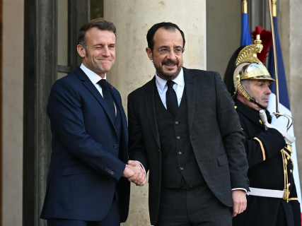 El presidente de Francia, Emmanuel Macron, recibe al presidente de Chipre, Nikos Christodoulides, en una reunion en el Eliseo el pasado diciembre. Europa Press/Contacto/Julien Mattia