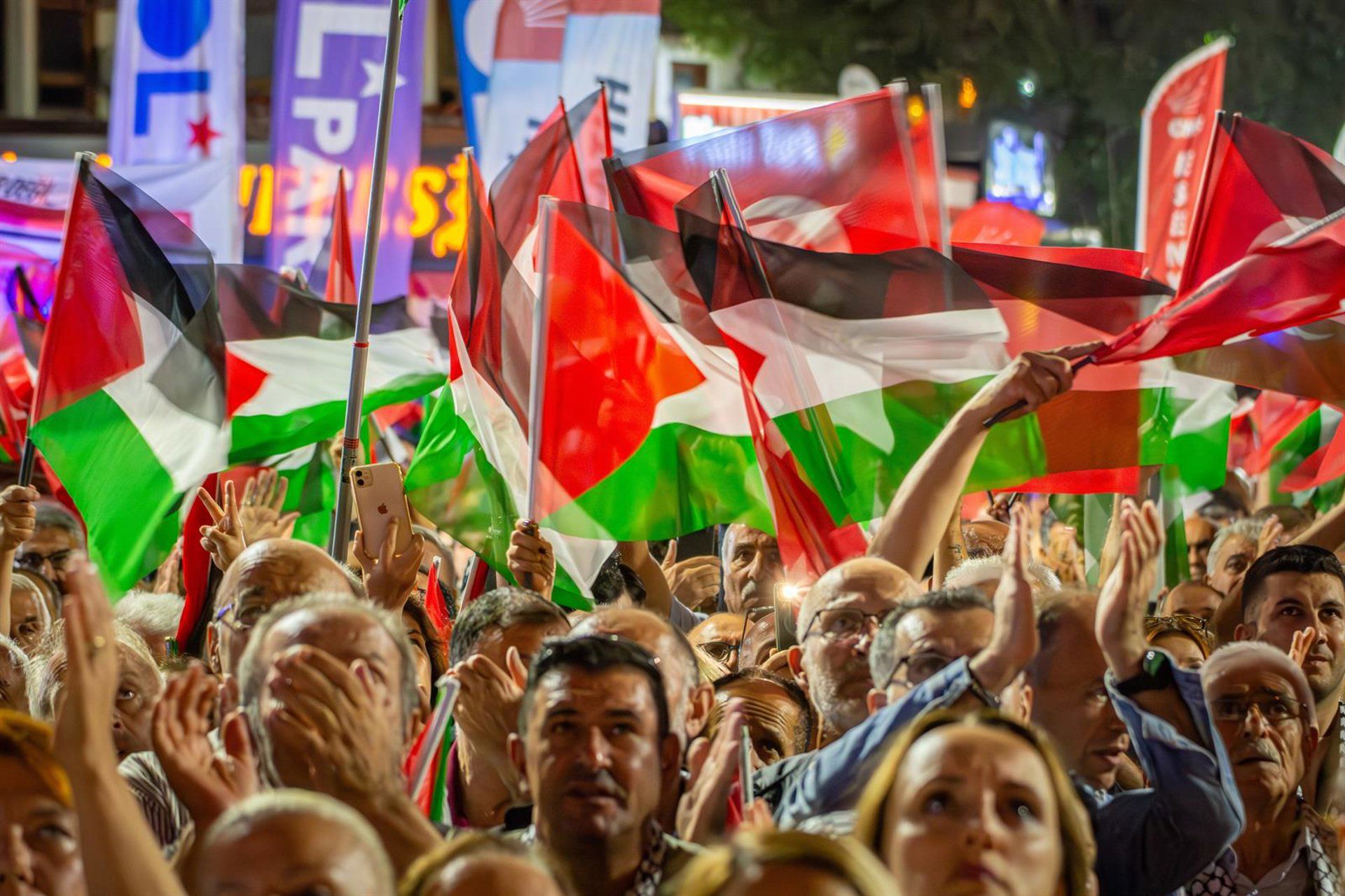 Organizada por diversas ONG, entre ellas la Fundación por los Derechos Humanos y las Libertades y la Ayuda Humanitaria (IHH) y la Plataforma de Apoyo a Palestina de Turquía, la manifestación contó también con la presencia de importantes líderes políticos turcos.