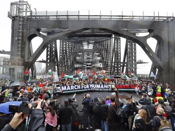 Más de 90.000 asistentes, cifra proporcionada por la Policía, y hasta tres veces más según los organizadores, se congregaron este domingo en Sídney, desafiando la lluvia en una de las manifestaciones más grandes de los últimos tiempos para pedir al Gobierno australiano que aumente la presión sobre Israel. La relevancia del evento fue tal que se permitió a los manifestantes cruzar el Puente del Puerto, privilegio otorgado solo en raras ocasiones como durante la emblemática marcha por los...