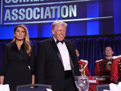 La primera dama, Melania Trump, junto al presidente de EEUU en la cena de corresponsales. Europa Press/Contacto/Yuri Gripas/POOL