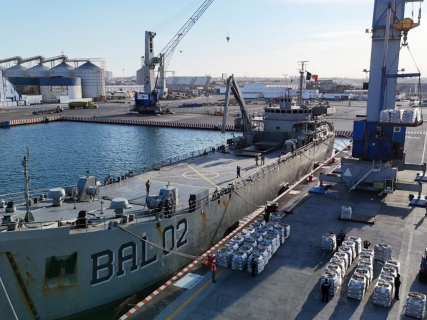 El navío “Papaloapan” lleva principalmente alimentos básicos como leche líquida, productos cárnicos, galletas, frijol, arroz, atún en agua, sardina y aceite vegetal, además de artículos de higiene personal, hasta alcanzar unas 536 toneladas de suministros.