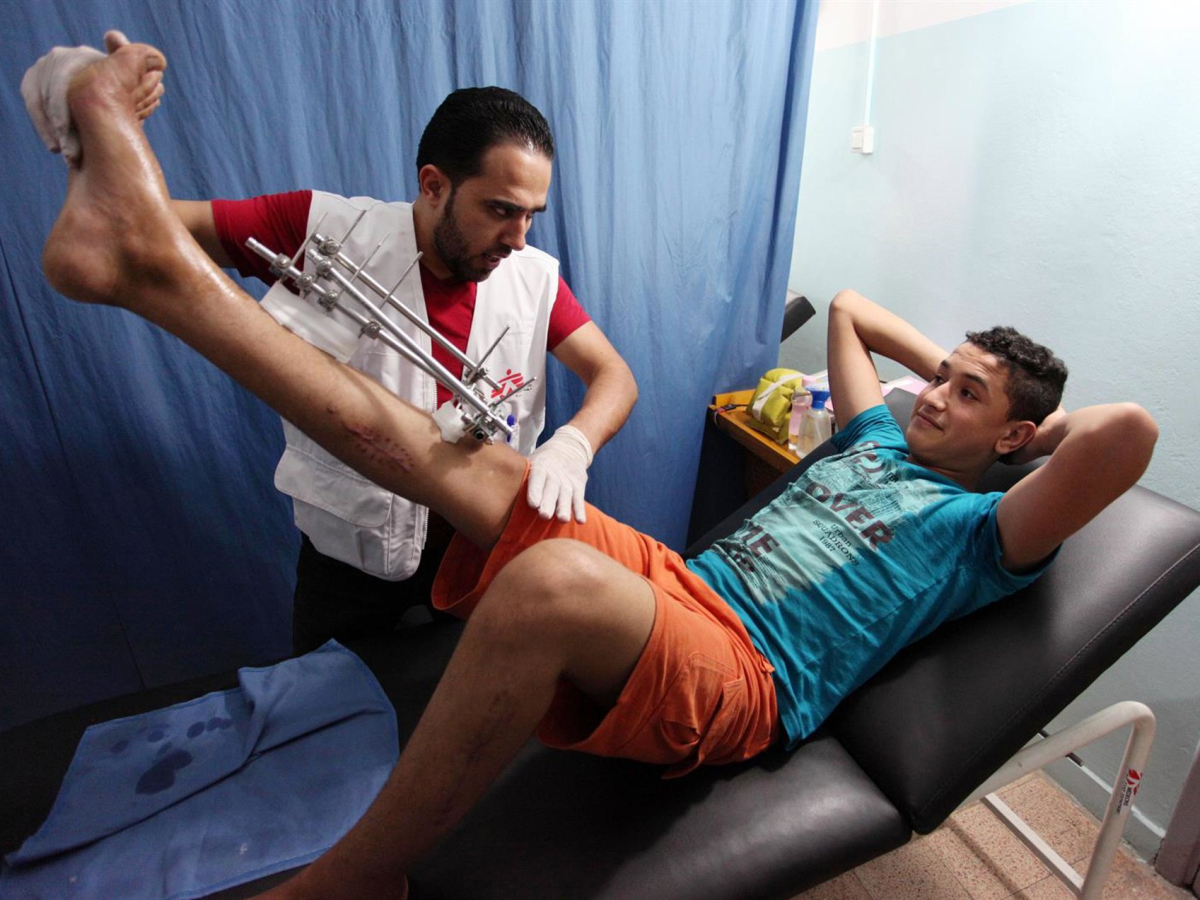 Un trabajador de MSF atiende a un herido en Gaza  Europa Press/Contacto/Mahmoud Ajour