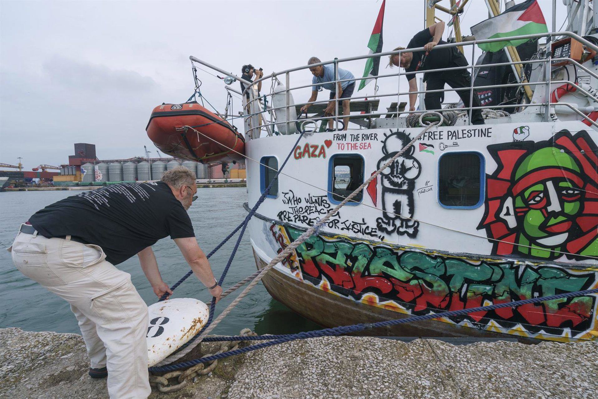 El ‘Handala’ navegó por varios puertos del norte de Europa y del Reino Unido en 2023 y 2024 para ‘romper el bloqueo mediático’ y ‘concienciando a la gente, construyendo solidaridad’ con eventos de prensa, manifestaciones artísticas y ‘actos de educación política en cada puerto que visitó’.