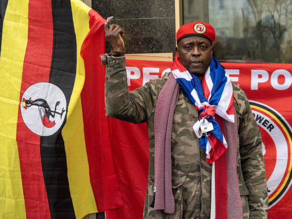 Manifestante opositor ugandés en una protestas registrada en Londres contra el presidente Museveni.  Europa Press/Contacto/Krisztian Elek