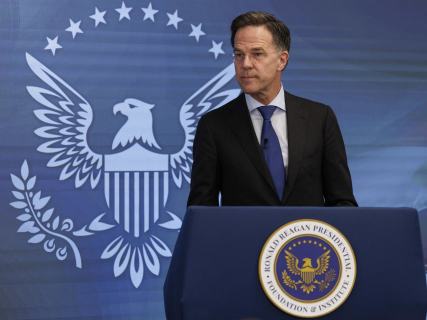 El secretario general de la OTAN, Mark Rutte, habla en el Centro para la Paz a Través de la Fuerza del Instituto Reagan, en Washington (Estados Unidos) NATO