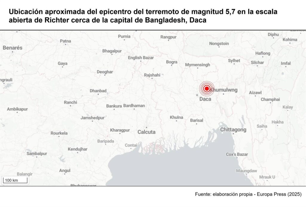 El Servicio Meteorológico de Bangladesh ha emitido una alerta en su sitio web indicando que el temblor, que ocurrió a las 10:38 de la mañana (hora local), “se ha percibido en diversas regiones del país, incluyendo Daca”. “El epicentro se localizó en Madhavdi, en Narsindgi”, destacaron desde el departamento.