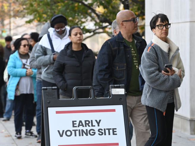 Votantes hacen fila para emitir su voto en un centro de votación anticipada para las elecciones presidenciales estadounidenses de 2024 entre Donald Trump y Kamala Harris, en Nueva York, EEUU Andrea Renault/ZUMA Press Wire/d / DPA