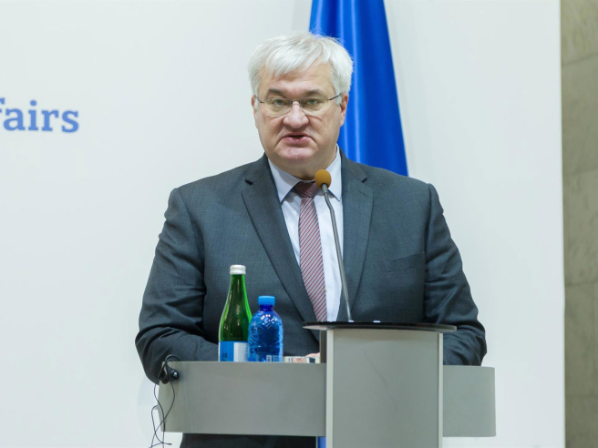 El ministro de Exteriores de Ucrania, Andri Sibiga, en rueda de prensa junto a su homólogo de Ghana. Europa Press/Contacto/Kirill Chubotin