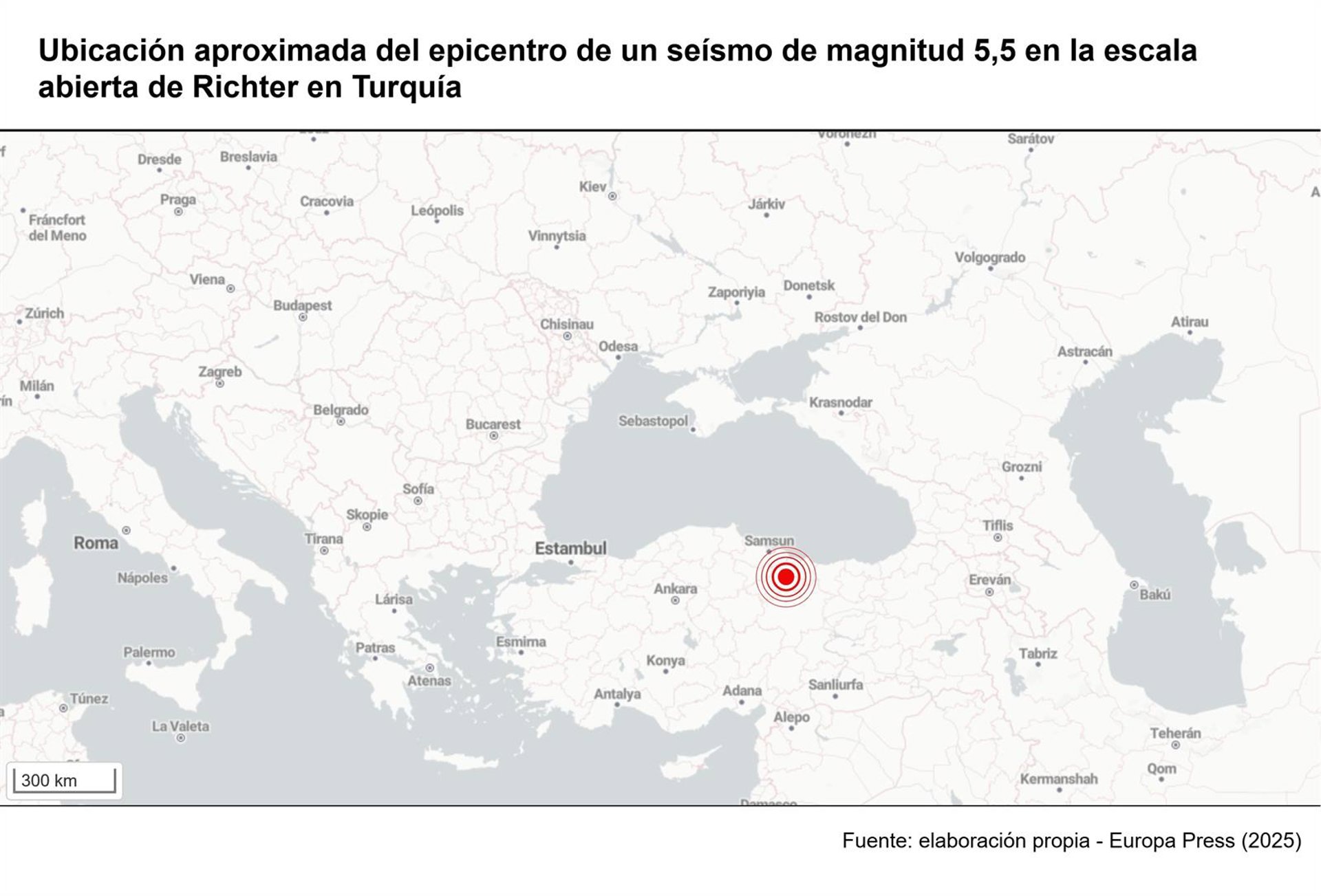 El organismo ha detallado que el terremoto se ha registrado en torno a las 3.35 horas (hora local) y ha precisado que el movimiento sísmico también ha sido percibido en las provincias de Samsun, Amasya, Ordu y Sivas.
