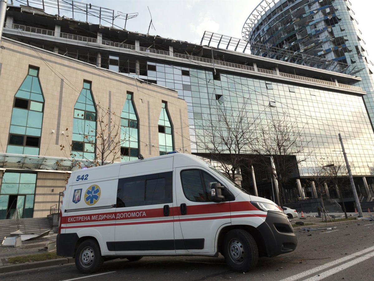 Una ambulancia frente a un edificio alcanzado por un dron lanzado por el Ejército de Rusia contra la capital de Ucrania, Kiev (archivo) -/Ukrinform/dpa