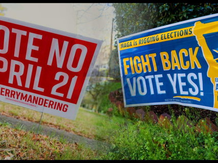 Pancartas en contra y a favor del nuevo mapa electoral propuesto por los demócratas para el estado de Virginia, EEUU Europa Press/Contacto/Kendall Warner