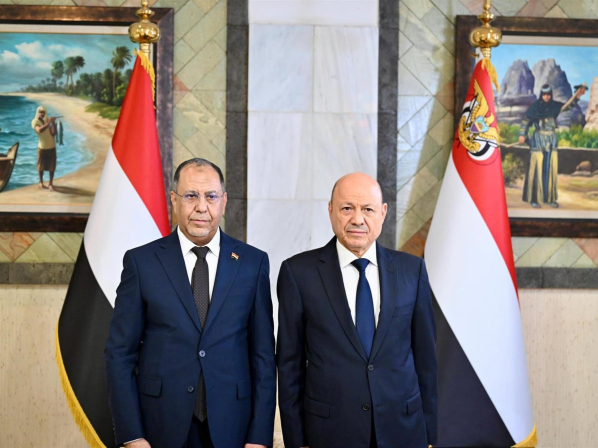 El primer ministro yemení, Shaya'a Mohsen al Zindani, y el presidente del Consejo de Liderazgo Presidencial, Rashad al Alimi, en Adén Europa Press/Contacto/Yemeni Press Office APA Imag