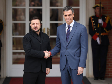 El presidente del Gobierno, Pedro Sánchez, recibe al presidente de Ucrania, Volodímir Zelenski, en la Moncloa. Alejandro Martínez Vélez - Europa Press