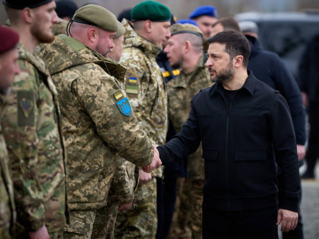 El presidente de Ucrania, Volodimir Zelenski, saluda a las tropas ucranianas. Europa Press/Contacto/PRESIDENT OF UKRAINE