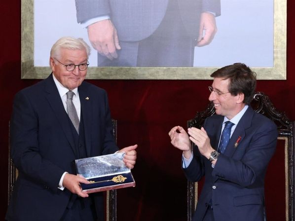 José Luis Martínez-Almeida, alcalde de Madrid, ha entregado la Llave de Oro de la ciudad a Frank-Walter Steinmeier, presidente de Alemania, en un acto que ha servido para reafirmar su compromiso europeísta. Ambos líderes han coincidido en que sólo a través de ‘la unión y la lealtad mutua’ se pueden alcanzar ‘las soluciones más justas y eficaces’ que conduzcan a ‘la paz, la democracia y la justicia social’.