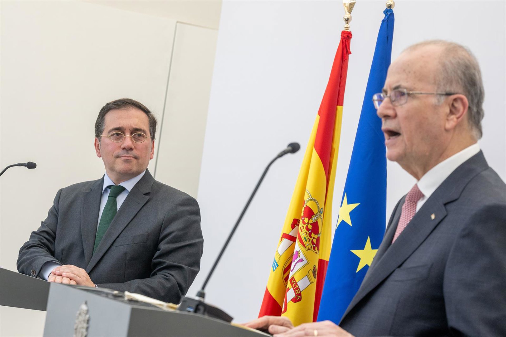El ministro de Asuntos Exteriores, Unión Europea y Cooperación, José Manuel Albares (i), y el primer ministro palestino, Mohamed Mustafa Belga - Europa Press