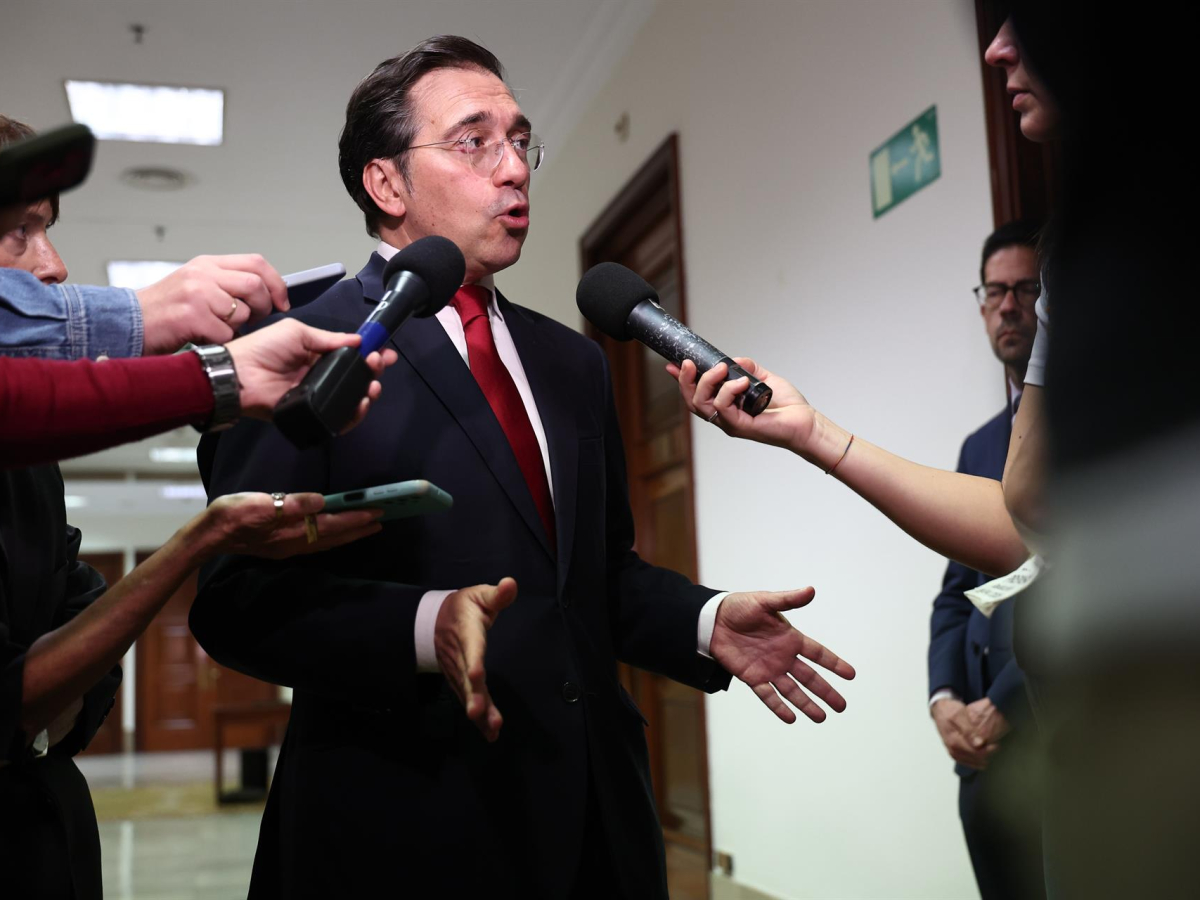 El ministro de Asuntos Exteriores, Unión Europea y Cooperación, José Manuel Albares, atiende a los medios a su llegada a la Comisión de Asuntos Exteriores, en el Congreso, a 9 de abril de 2026, en Madrid (España).   Eduardo Parra - Europa Press
