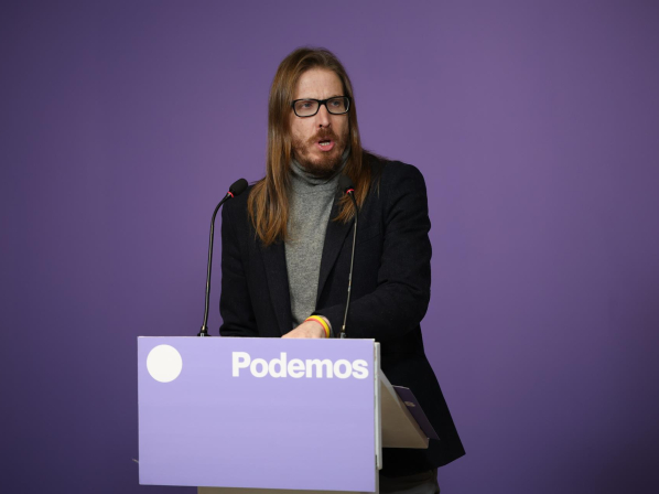 El secretario de organización y portavoz de Podemos, Pablo Fernández, ofrece una rueda de prensa en la sede de Podemos, a 9 de febrero de 2026, en Madrid (España). Alejandro Martínez Vélez - Europa Press